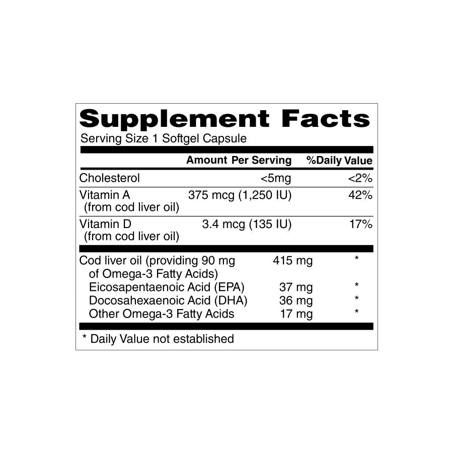 Our cod liver oil supplement, as the name implies, comes directly from the liver of Icelandic codfishes and is a specific type of fish oil. Like regular fish oil, it’s high in omega-3 fatty acids which provide many great health benefits for your heart, skin, and brain.* However, Cod liver is also high in naturally occurring vitamin A and vitamin D, giving cod liver oil an incredibly nutritious profile.*